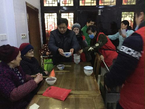 1月24日是农历腊八节,经政协湖南路街道工委与区政协委员、南京清凉寺住持理海联系协商,节日当天上午,寺院5名义工与街道、社区工作人员,分别来到银杏树养老服务湖南路中心和爱德慈佑院,为26位老人、30名智障孩子送去精心熬煮的腊八粥,共同祝福老人们健康长寿、孩子们健康快乐成长。政协湖南路街道工委主任肖兴全程参与现场慰问活动,并诚挚感谢清凉寺理海委员,感谢义工老师对街道老人、孩子的关爱。