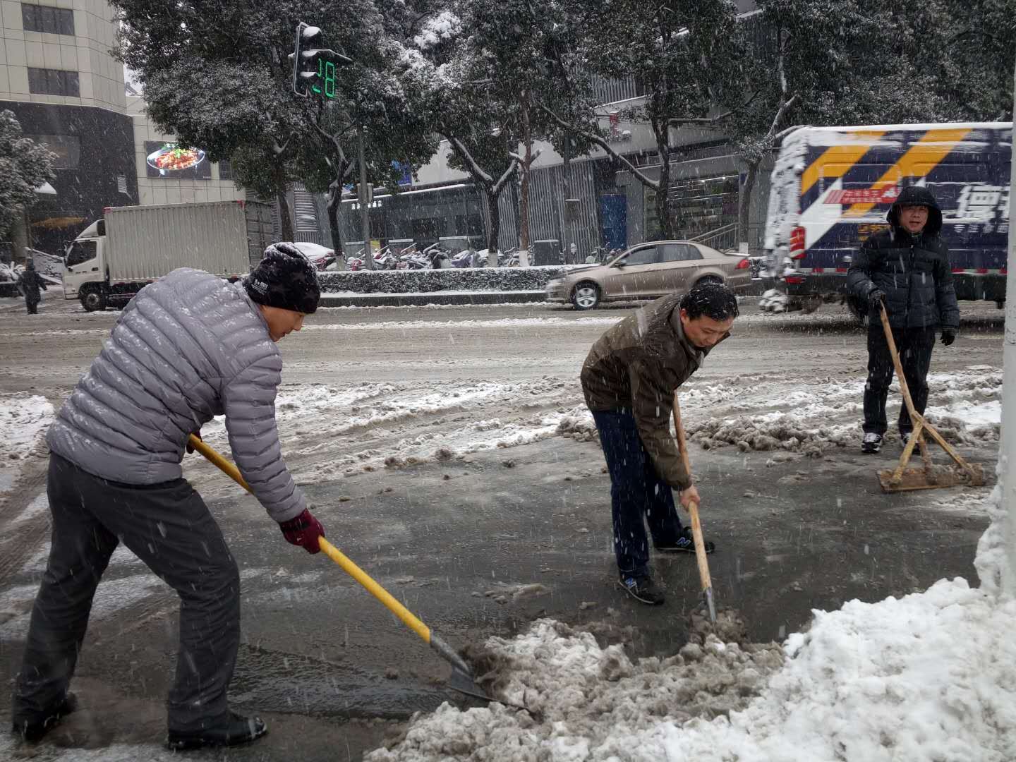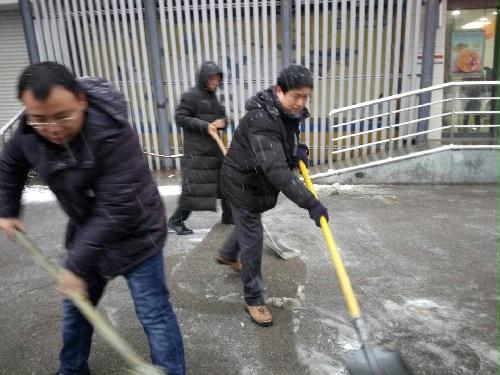1月24日以来,南京连降暴雪,路面积雪给交通带来不便。为保障广大群众的出行安全,25日、26日,区政协机关党支部积极响应号召,在党支部书记李增平的带领下,组织全体党员干部对山西路两侧包干路段的积雪进行清扫。经过大家的共同努力,人行道上的积雪情况得到缓解,获得过往行人的称赞。27日、28日,大家又牺牲周末休息时间,全天在岗,随时待命,对机关大院内的包干区域进行清扫。在连续几日的奋战中,政协机关的党员干部充分发挥吃苦耐劳、顽强拼搏的战斗精神,用实际行动做“两学一做”的践行者,传递了冬日里温暖的正能量。