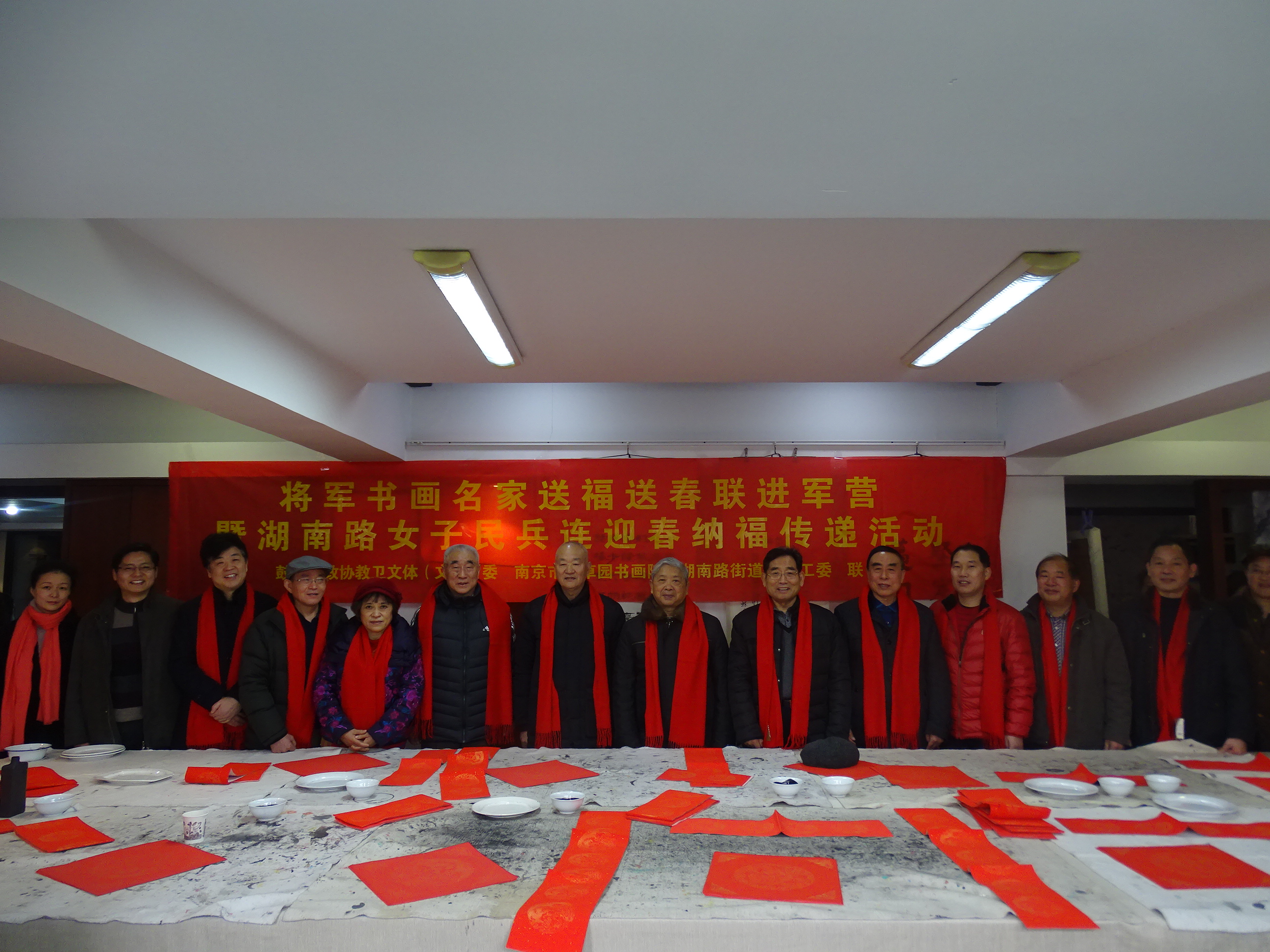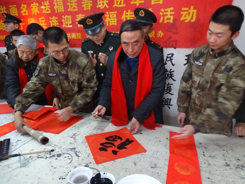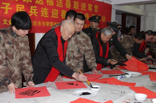 1月19日上午,政协湖南路街道工委与南京芳草园书画院联合邀请将军书画名家,在省军区大院(丁家桥社区双拥文化苑)组织开展送福送春联进军营暨迎春纳福传递活动。江苏省军区原副司令员、少将许志龙,江苏省军区原副司令员、少将吕振林,江苏省军区原副政委、少将陆殿义,安徽省军区原参谋长、少将汤朝荣,南京芳草园书画院院长蔡志芳,著名书法家欧锦钰等书画名家出席。