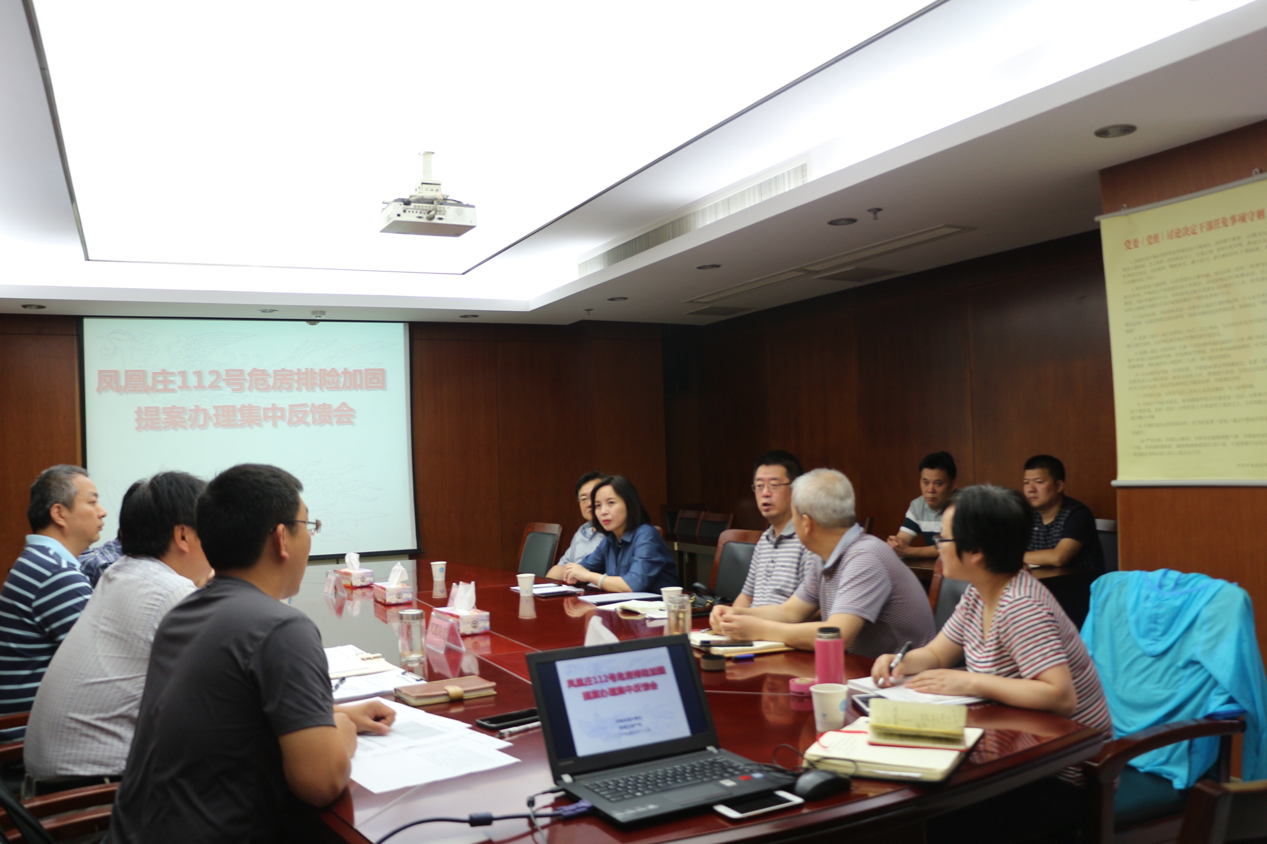 6月18日上午,凤凰街道联合区房产局,就区政协委员潘宁、徐立、侯小东、章蔷丽、李军联名提案《关于推进鼓楼区凤凰庄112号危房加固工作的建议》落实办理情况,向全体提案人进行集中反馈,接受并逐条解答提案人询问。目前,在凤凰街道、区房产局的共同推动下,区政府正式批准同意对凤凰庄112号危房实施加固并已付诸实施。委员们对该提案主办单位凤凰街道、协办单位区房产局以集中反馈会方式给予答复的做法充分认可,对两家承办单位前期所做的务实细致、富有成效的工作和后续周密计划安排给予“点赞”,一致表示将持续关注并实时跟进项目进展,第一时间做好社情民意的收集和反映工作,协力承办单位把这项惠民利民的好事做好、实事做实。
