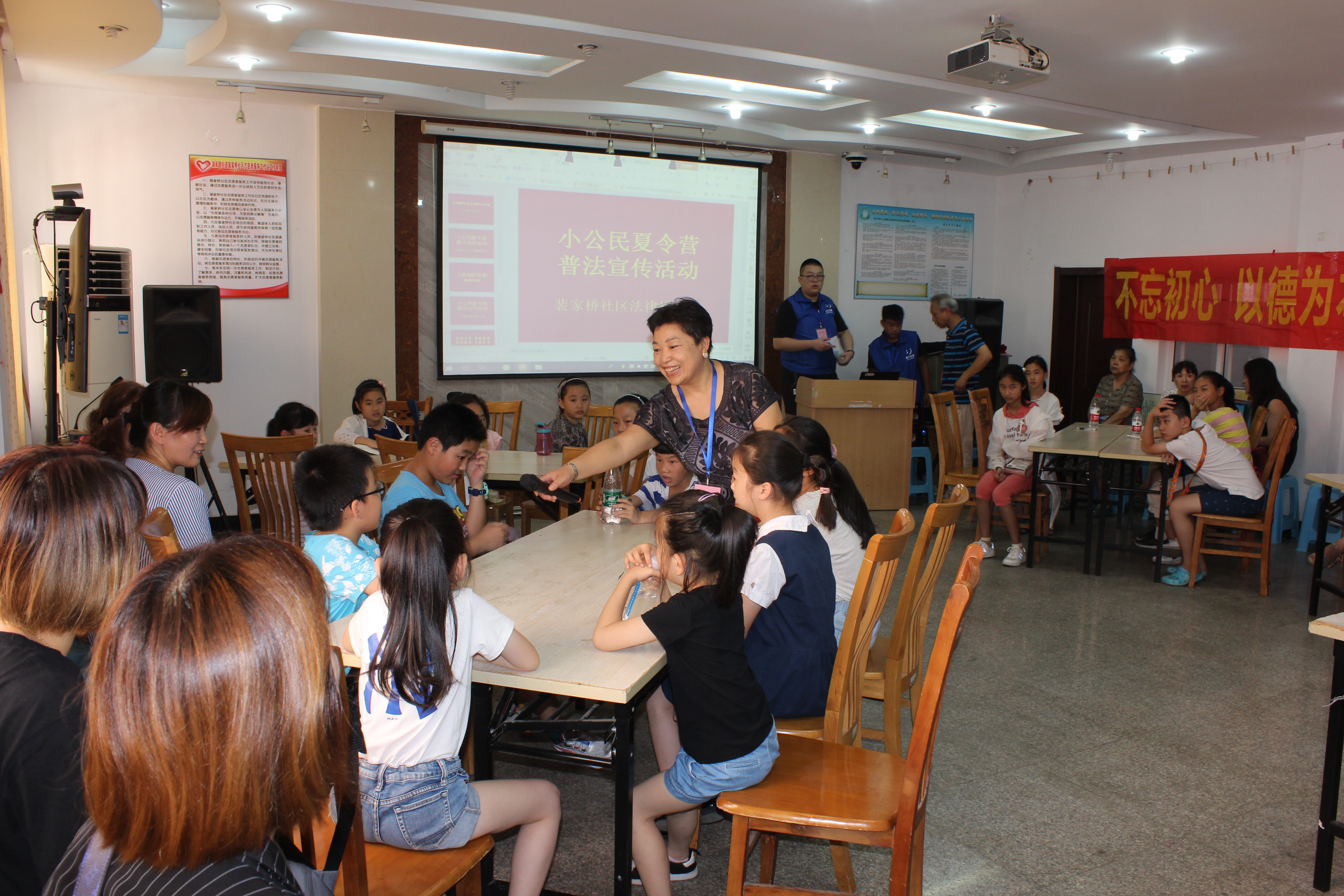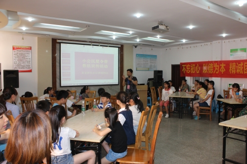 8月8日下午,市政协常委、江苏维世德律师事务所高级律师、副主任李晓霞带领南京乐行公益法律服务中心的志愿者走进湖南路街道裴家桥社区,开展小公民夏令营普法宣传活动。李晓霞委员通过播放视频案例、让孩子们与志愿者进行“我演我自己案例”,表演户外活动、买东西、遇见陌生人、突发情况等生活身边的事,紧扣儿童日常遇到的法律问题,为孩子们进行相关法律知识讲解。通过深入浅出、形象生动阐述和表演,让孩子们学法懂法用法,学会自我保护,健康安全成长。现场活动气氛十分活跃,孩子们不时提问,李晓霞委员耐心解答、与孩子们互动交流。25个湖南路辖区三级到五年级的少年儿童、8位志愿者及社区工作人员、家长等共50人参加活动。