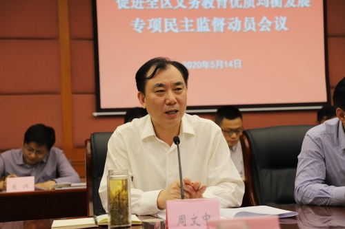 5月14日上午,区政协召开“促进全区义务教育优质均衡发展”专项民主监督活动动员会,标志着2020年区政协专项民主监督工作正式启动实施。区政协主席周文中出席会议并讲话。区政府副区长蔡双根,区政协副主席周瀚生、秘书长姜涛参加会议。会议由区政协副主席周越古主持。